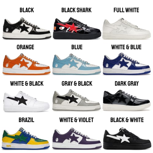 Las A Bathing Ape BAPE Sta Low son un icono del streetwear japonés, combinando diseño clásico, actitud urbana y una estética inconfundible. Fabricadas con materiales de alta calidad y acabados cuidados, ofrecen una pisada cómoda y resistente gracias a su suela sólida y su estructura bien definida. Su silueta low-top y el emblemático logo BAPE Sta aportan personalidad y estilo a cualquier outfit urbano. Disponibles en 12 modelos diferentes, con opciones que van desde los más clásicos hasta los más llamativos.